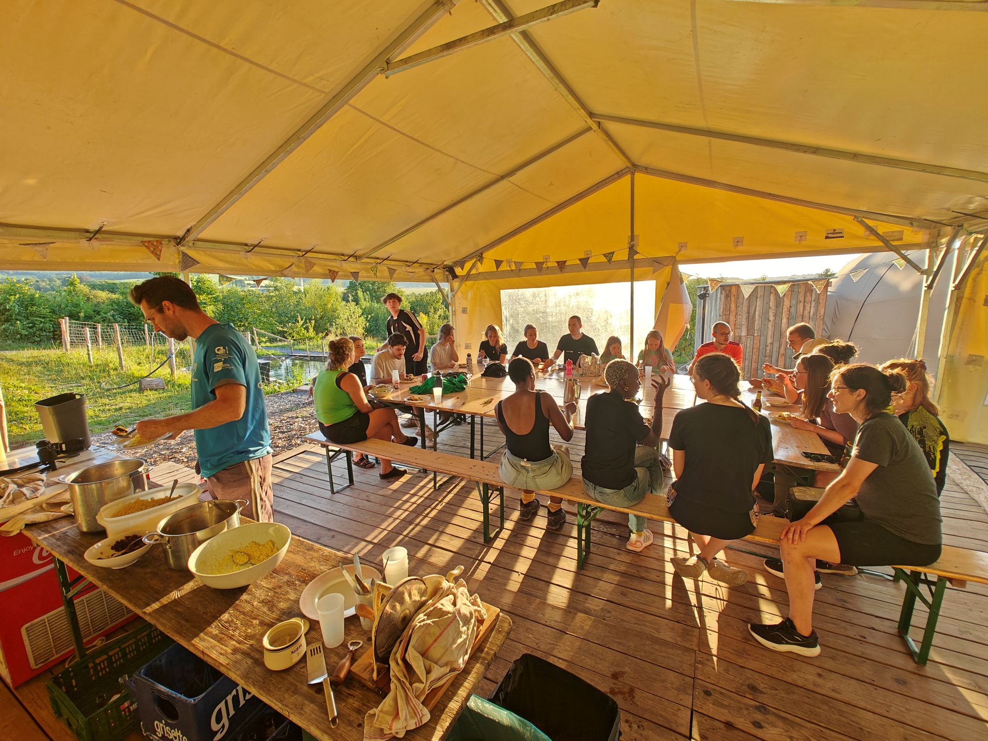 Nous prenons en charge les repas qui seront végétariens et préparés avec les légumes du champ et le maximum d’ingrédients locaux et bio. Nous recherchons également un.e. bénévole pour s’occuper de coordonner et confectionner les repas.