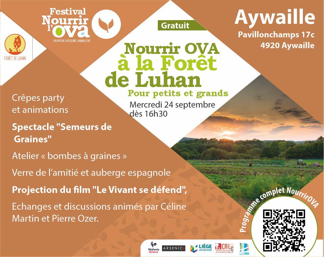 Le Festival Nourrir l’OVA (Ourthe-Vesdre-Amblève) se déroule du vendredi 12 septembre au dimanche 5 octobre 2025, et se pose à Luhan le mercredi 24 septembre avec une proposition extra, youpie!